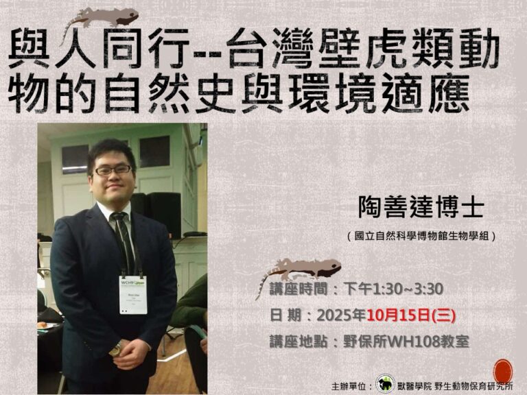 114/10/15(三)13:30-15:30「陶善達博士主講【與人同行—台灣壁虎類動物的自然史與環境適應】,歡迎聆聽!」